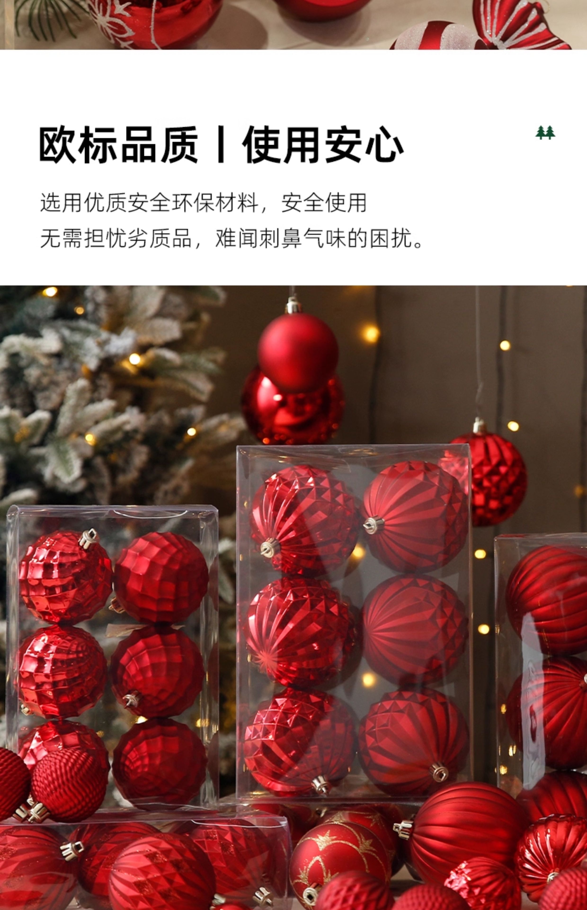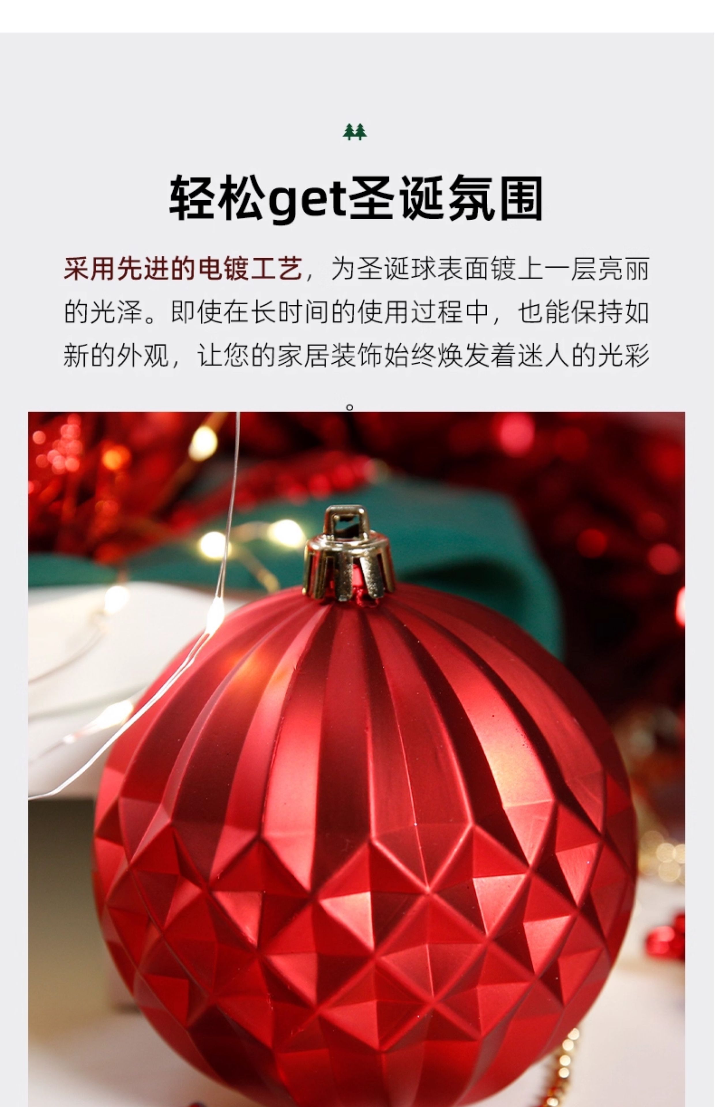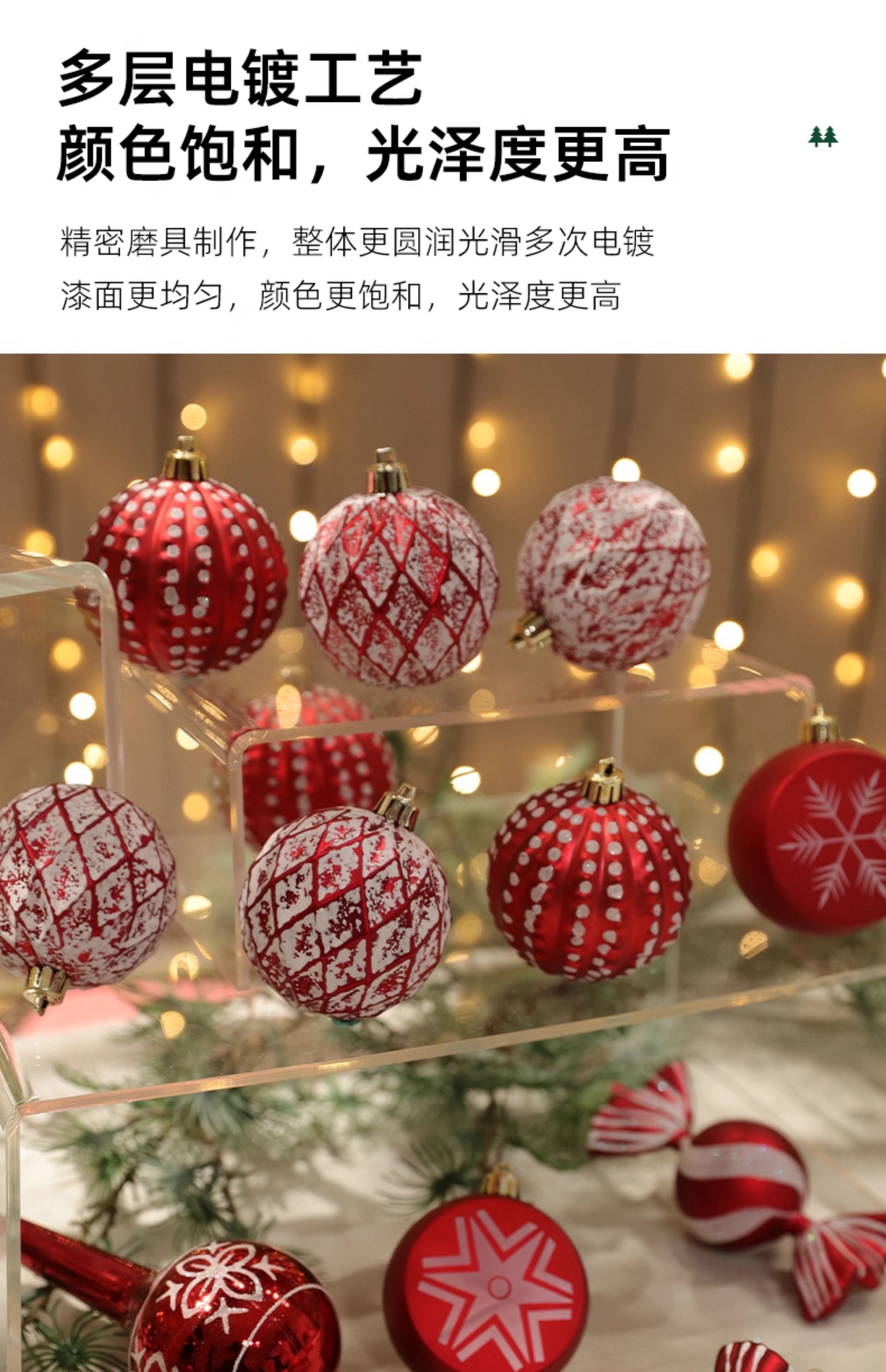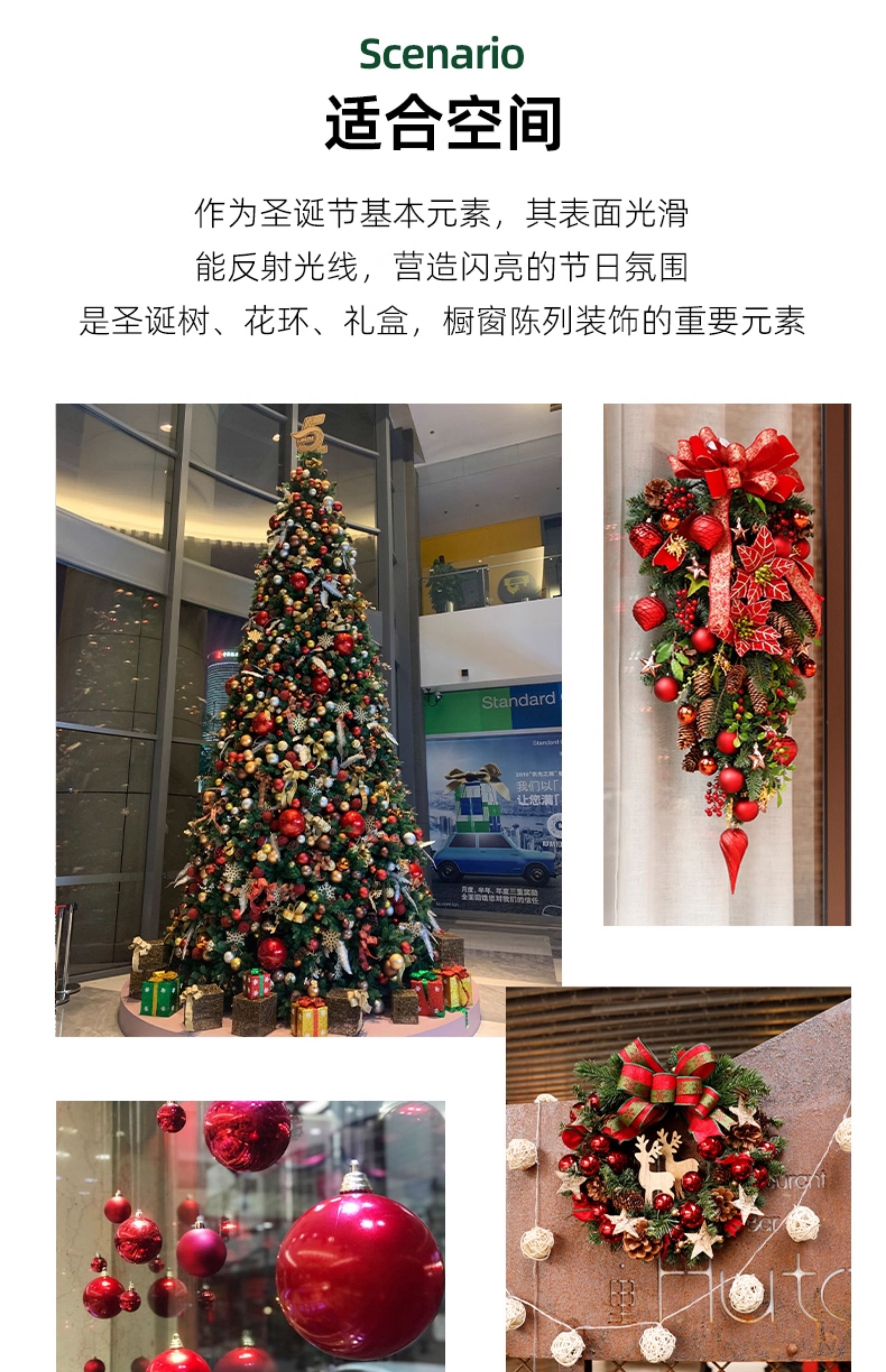 晶华造花红色圣诞球3cm-25cm圣诞球哑光亮光球圣诞树圣诞花环挂件