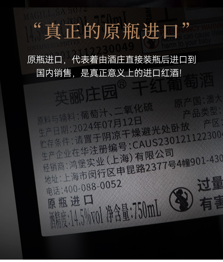 澳洲原瓶进口红酒14.5度英郦庄园...